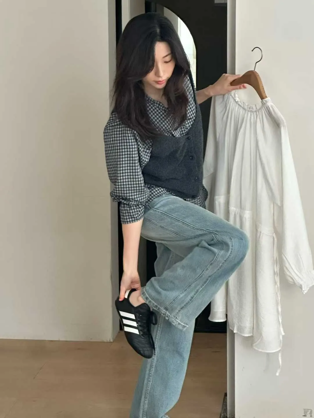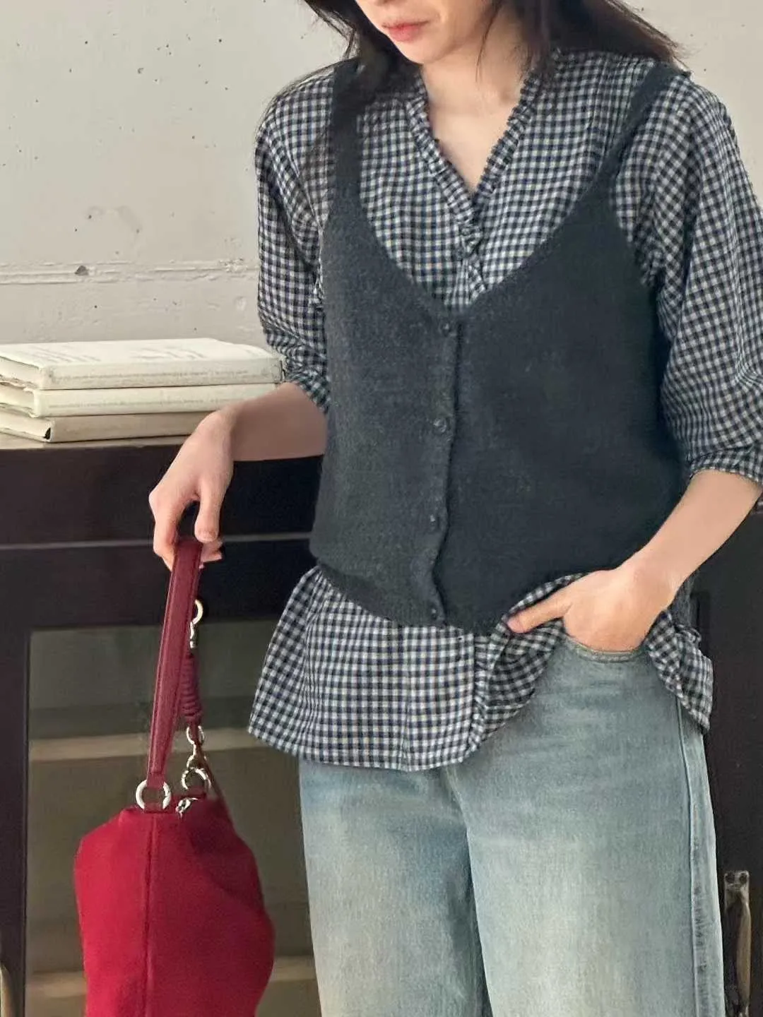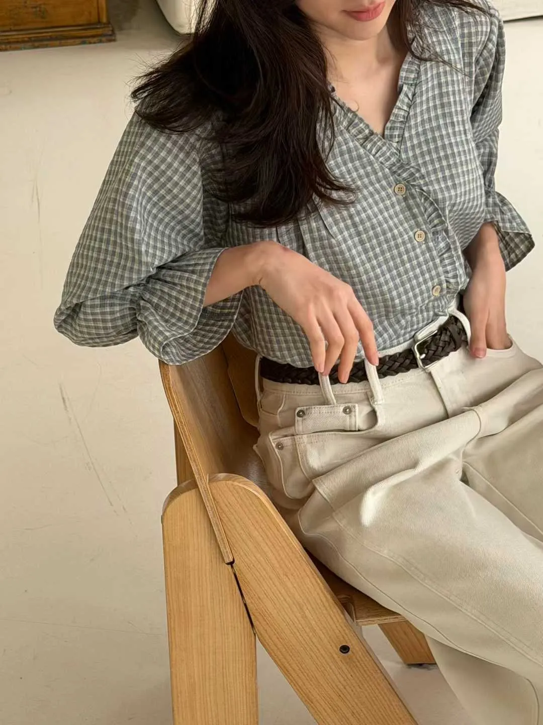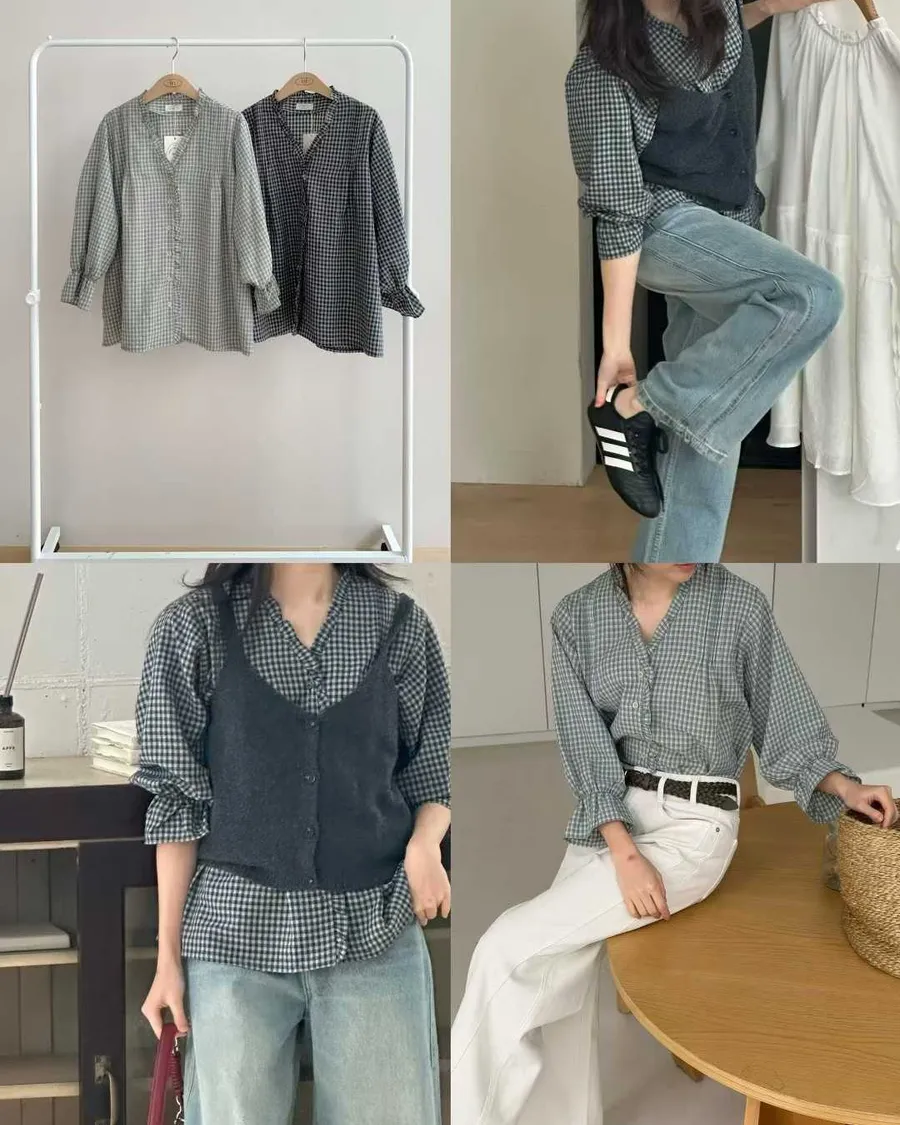 #v領格紋氣質襯衫