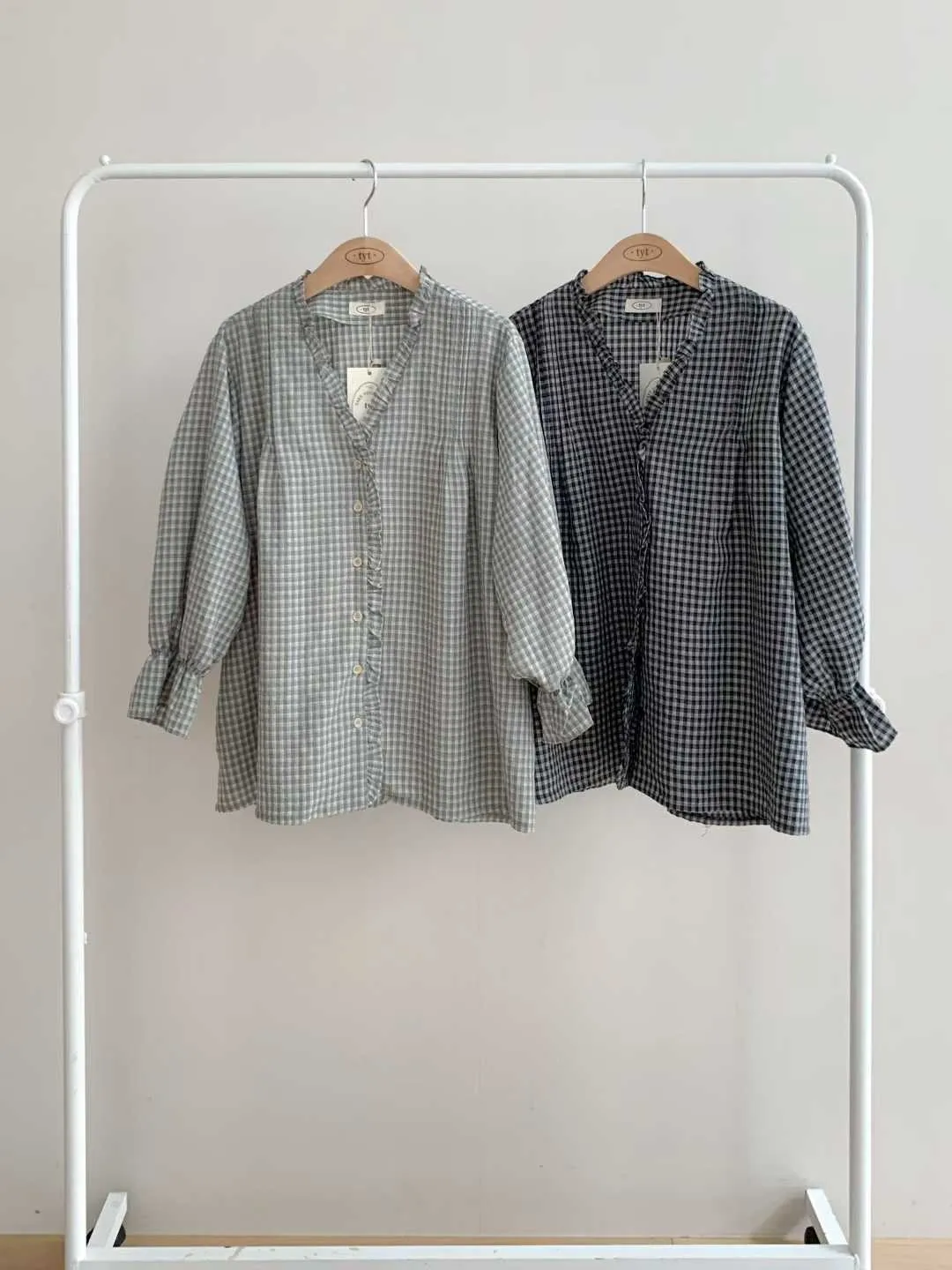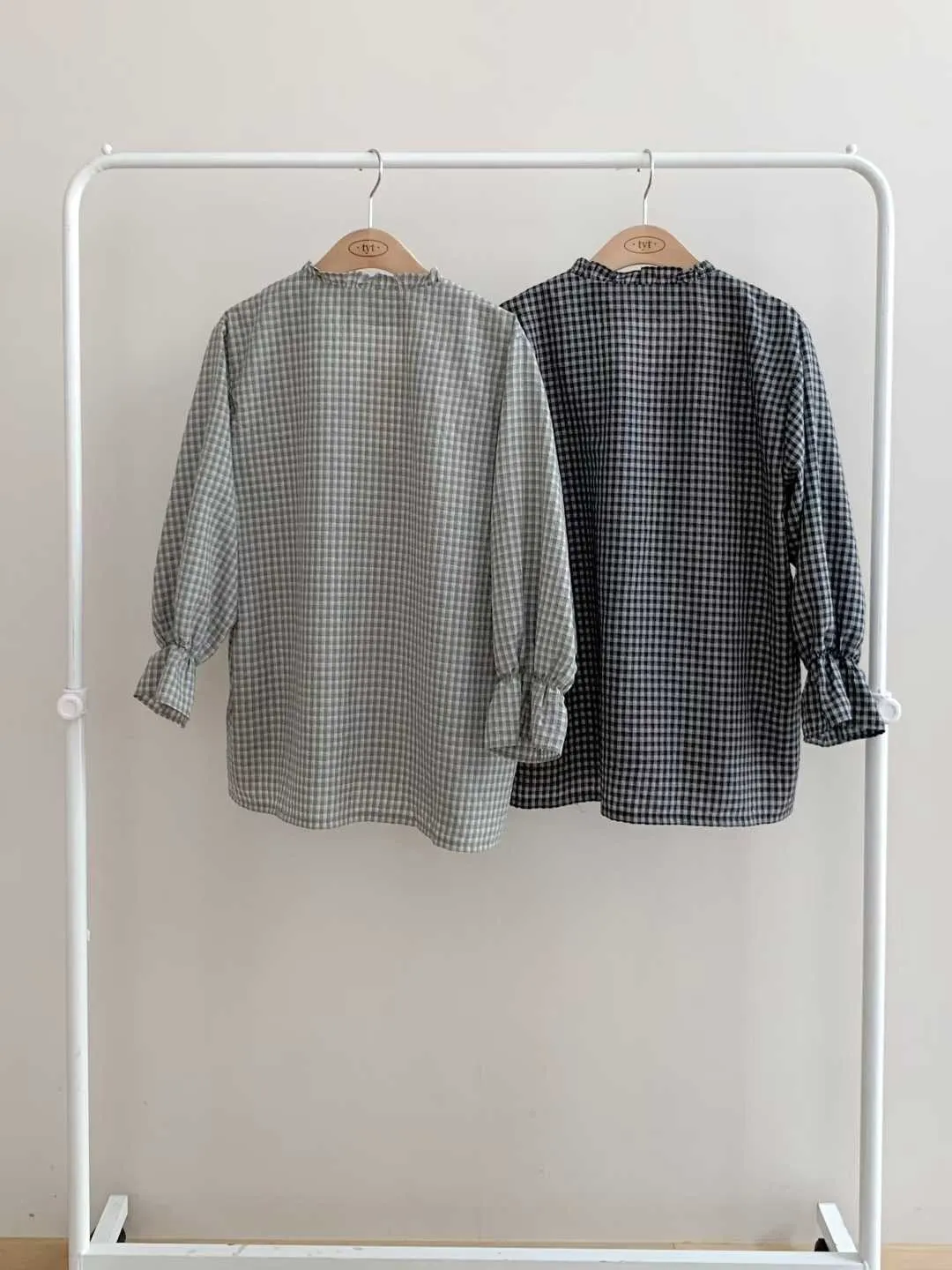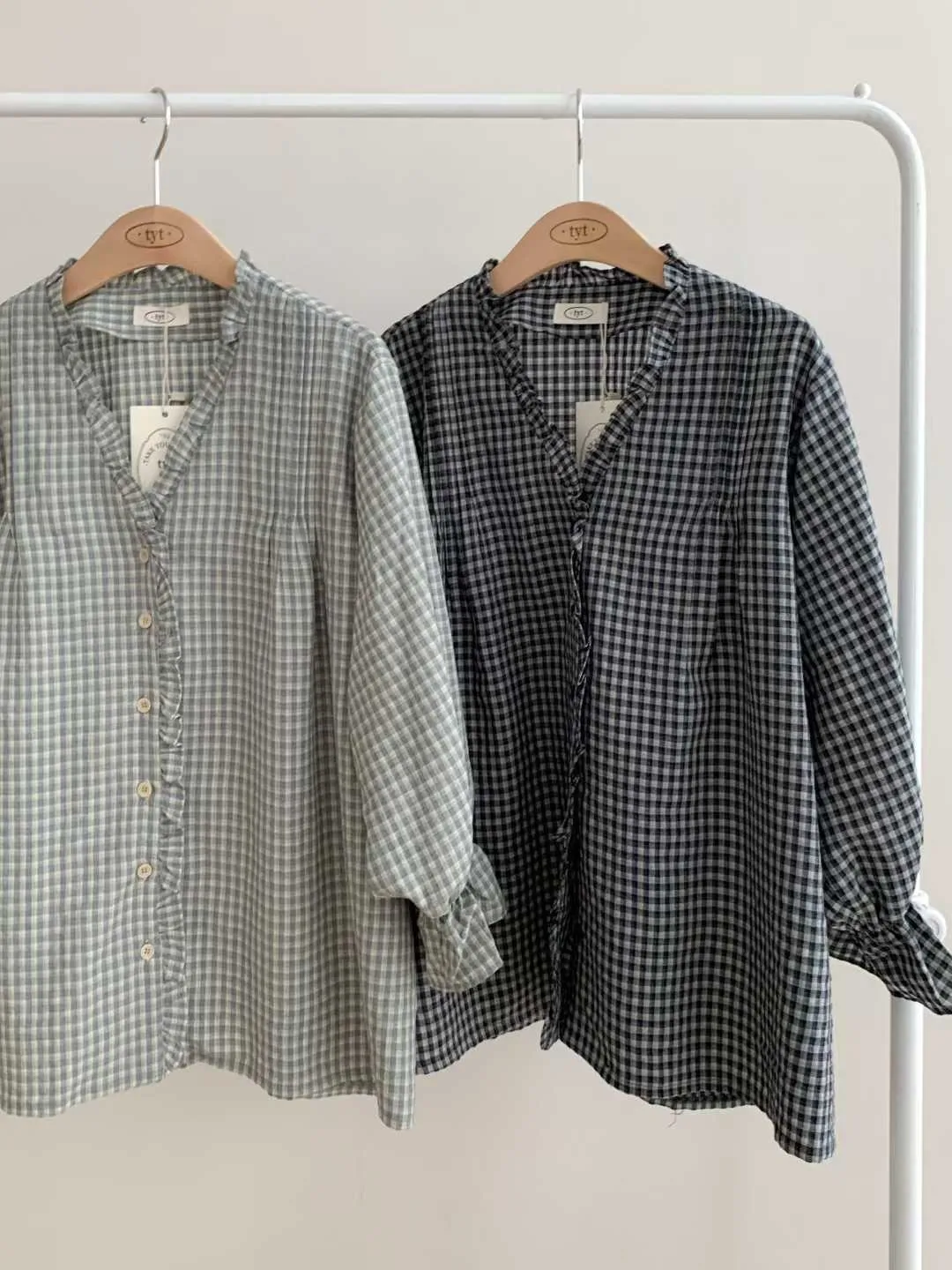 tyt 細緻格紋花邊襯衫