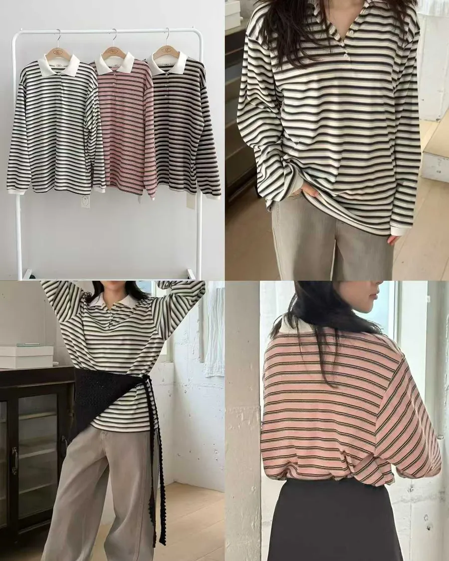 #條紋Polo領長袖上衣🍩