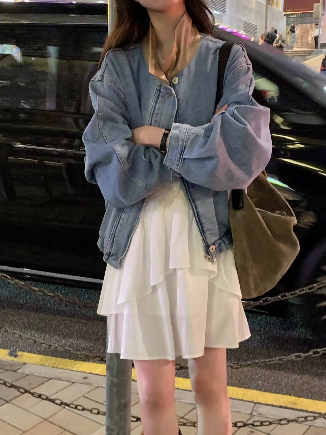 #領子拼接皮革好時髦