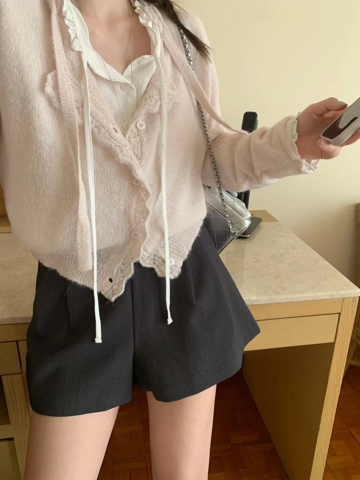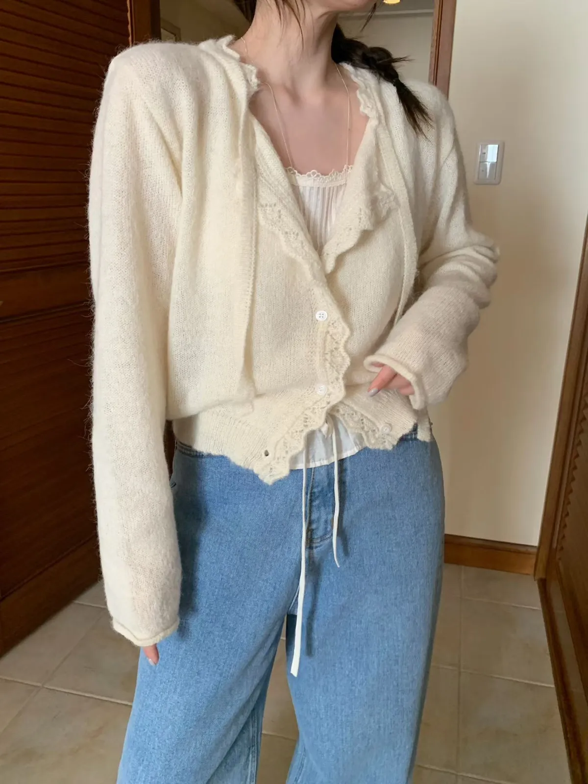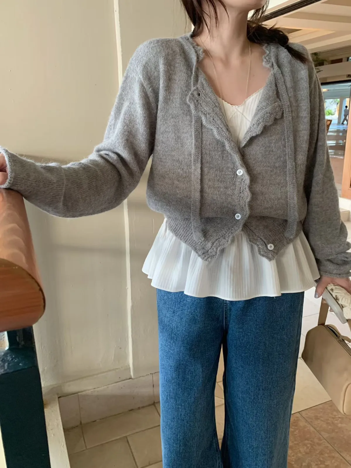 mellounge 浪漫滾邊綁帶羊毛針織衫
