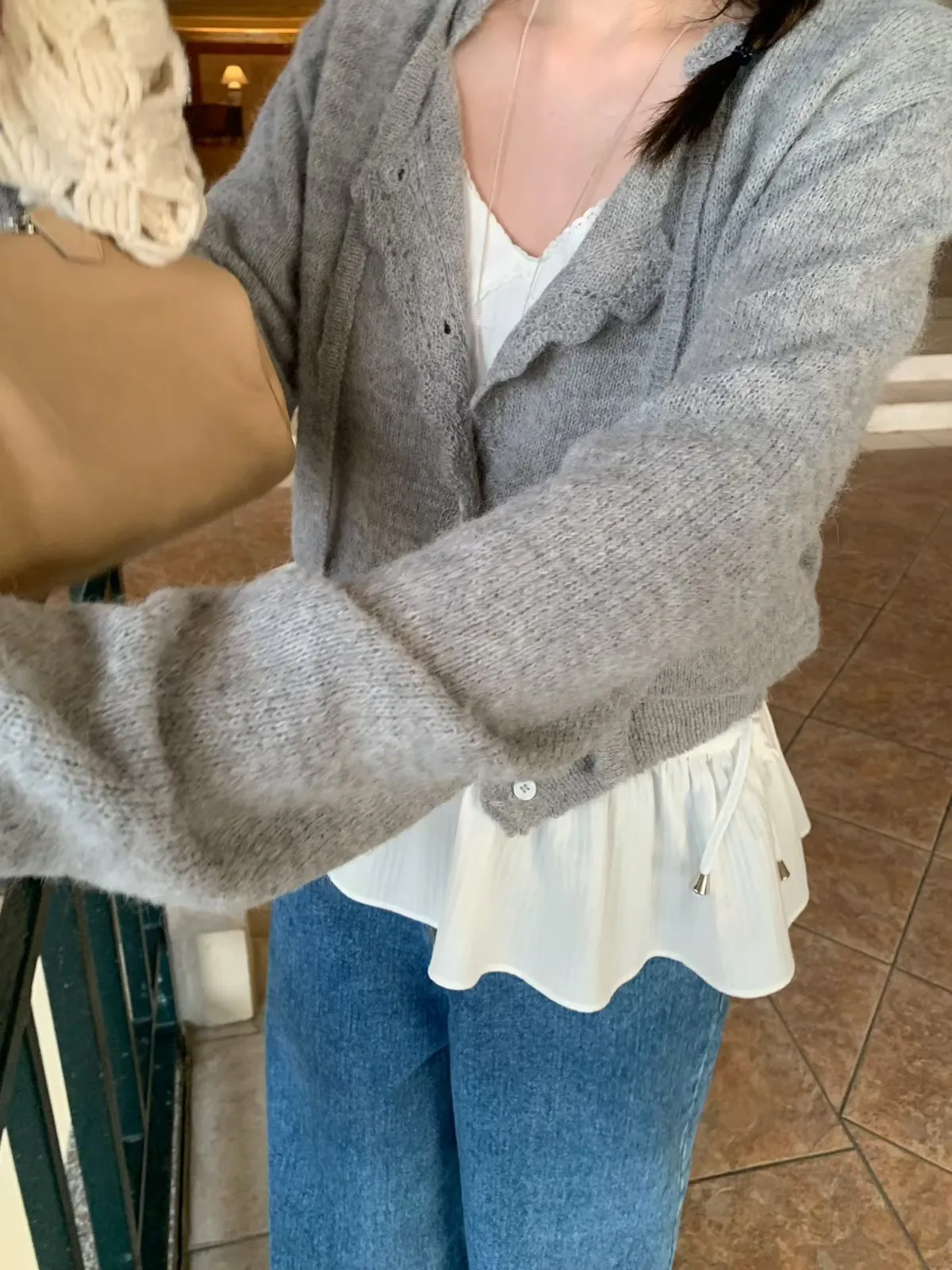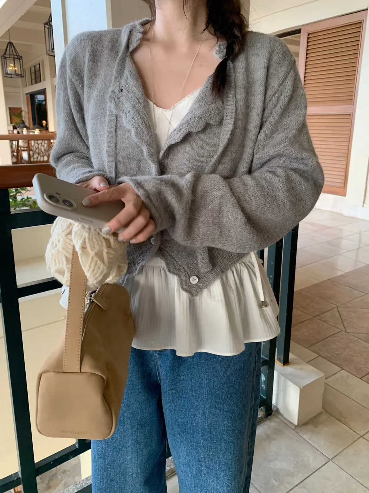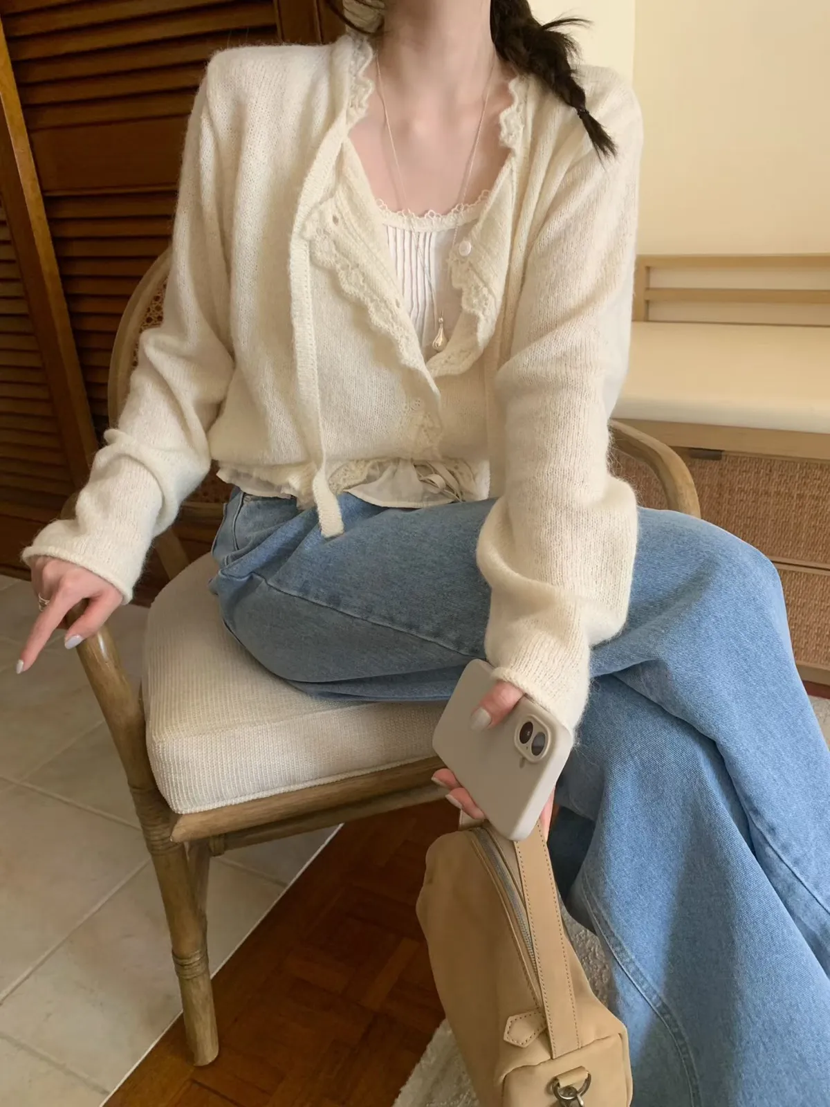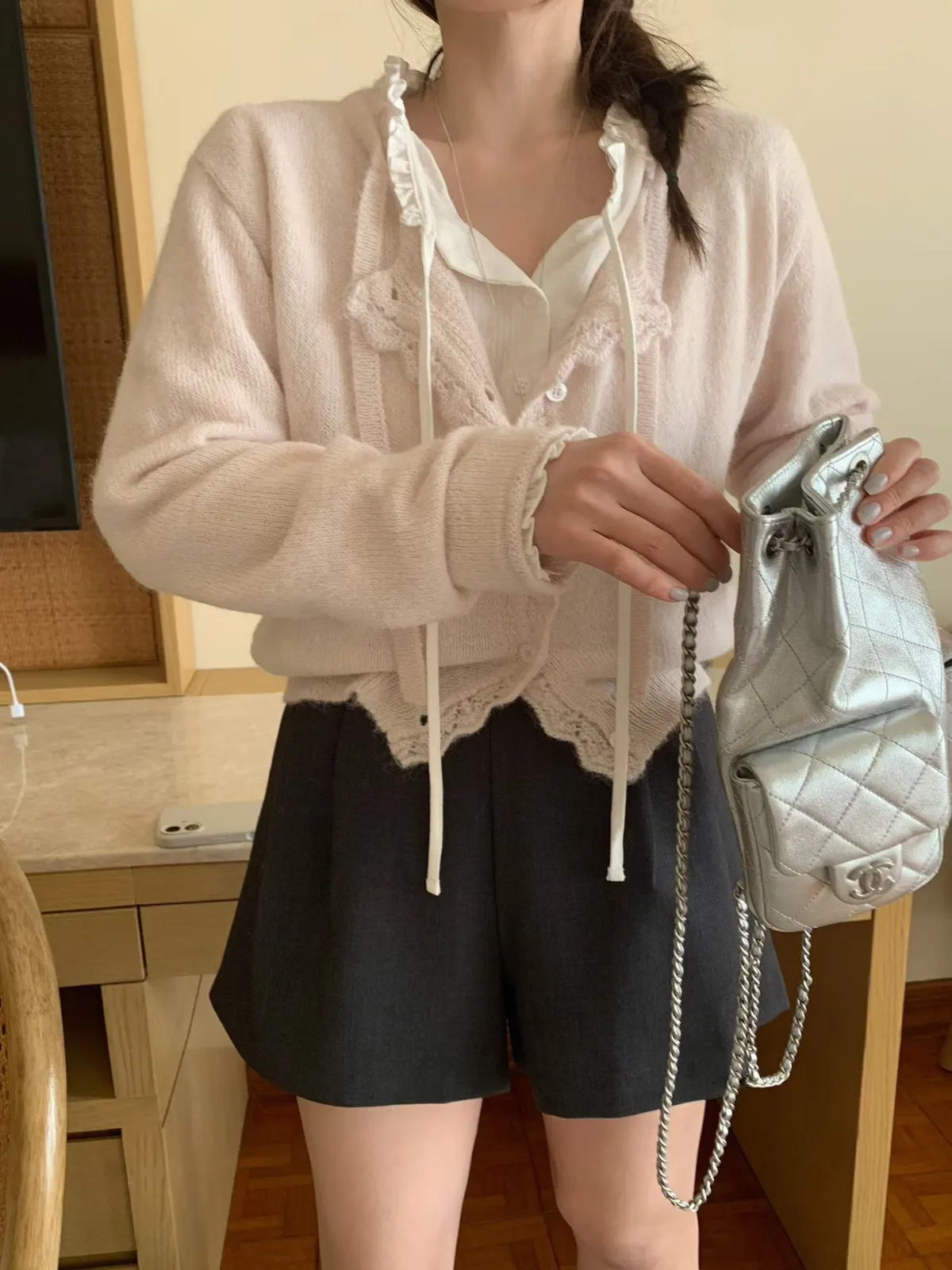 mellounge 浪漫滾邊綁帶羊毛針織衫