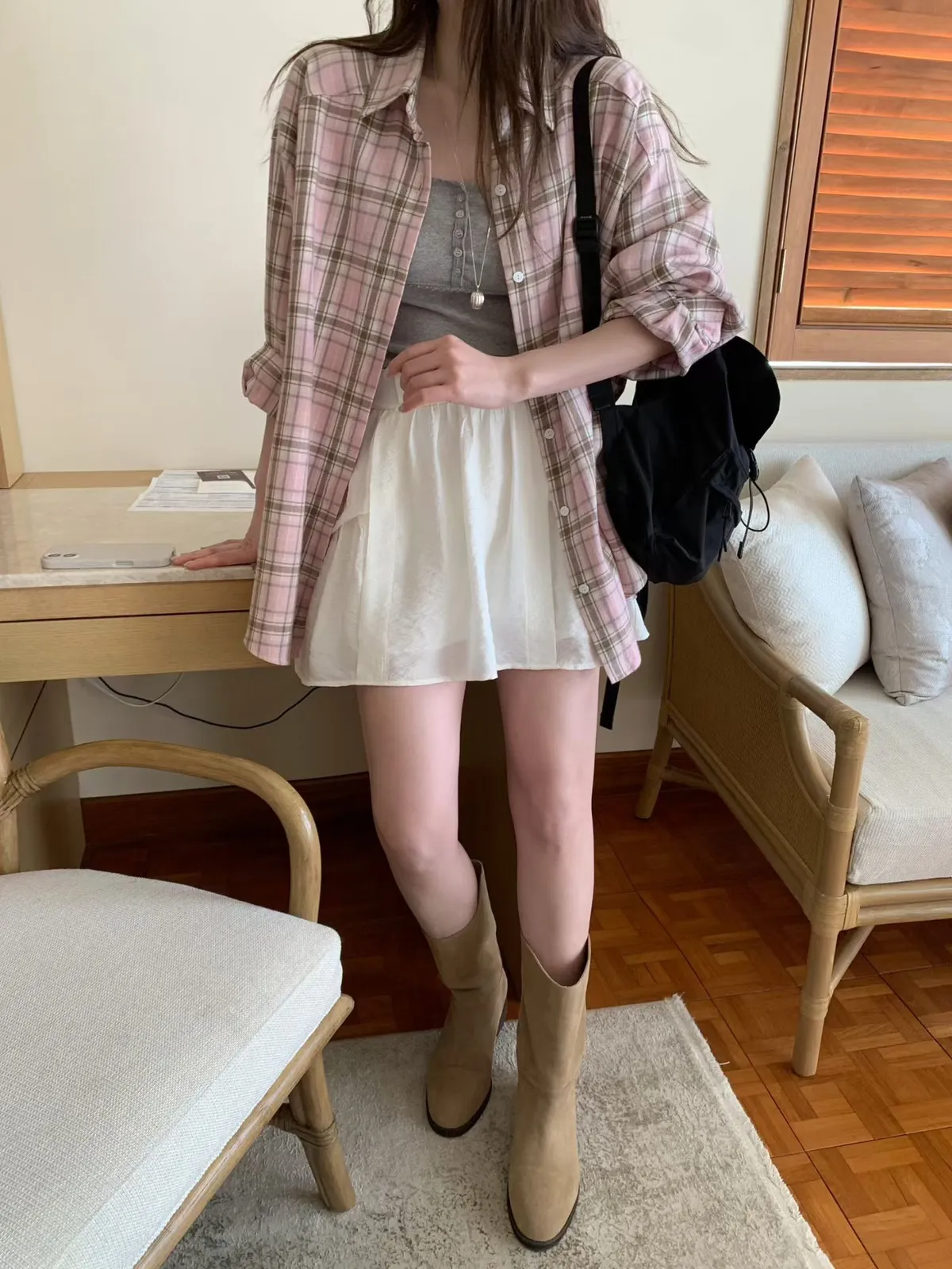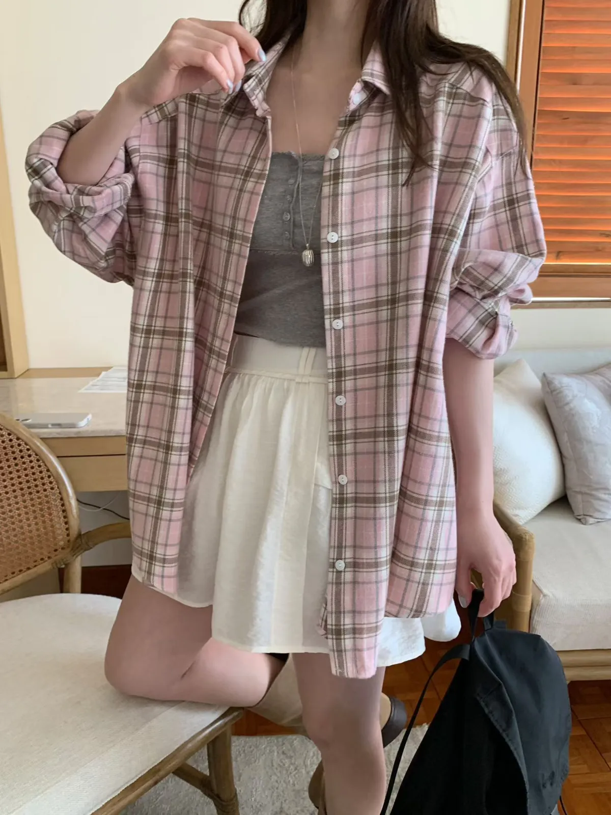 mellounge 鬆弛感大格紋襯衫