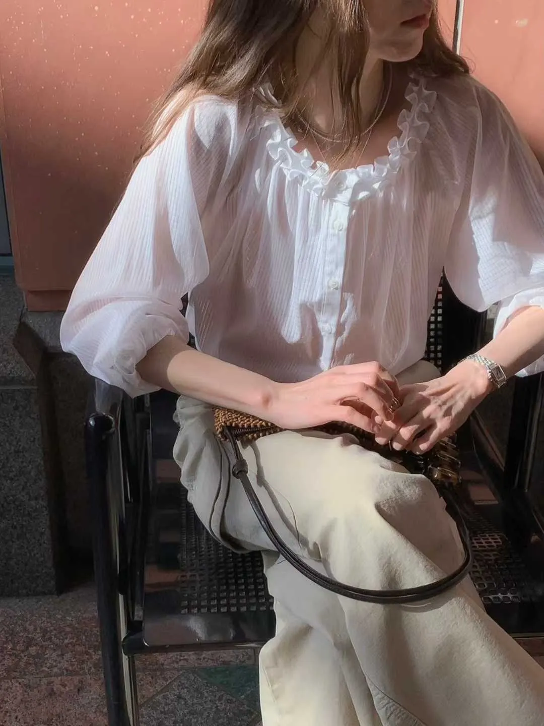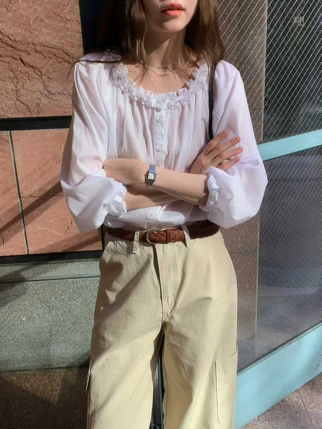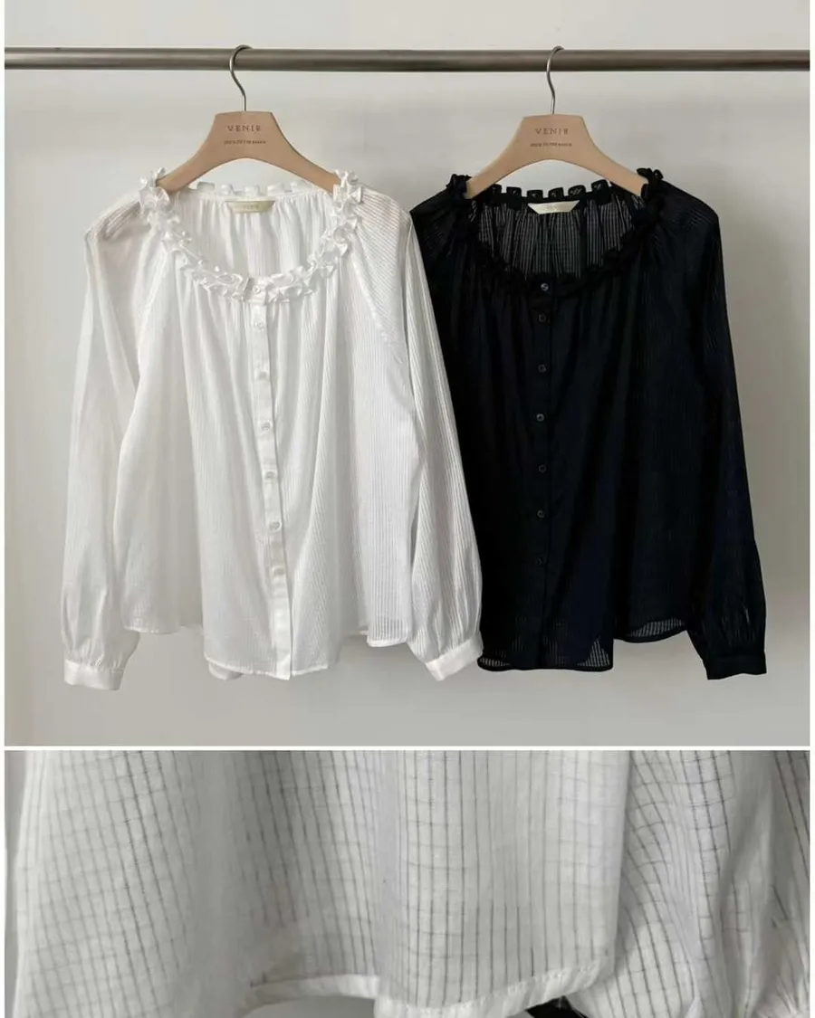 VENIR 花邊薄棉溫柔襯衫
