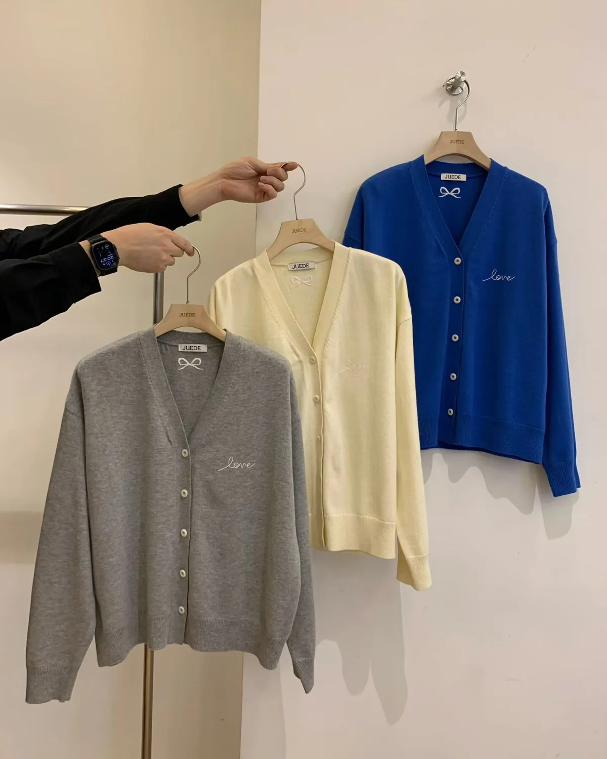 JUEDE春季新款-Love刺繡棉針織外套