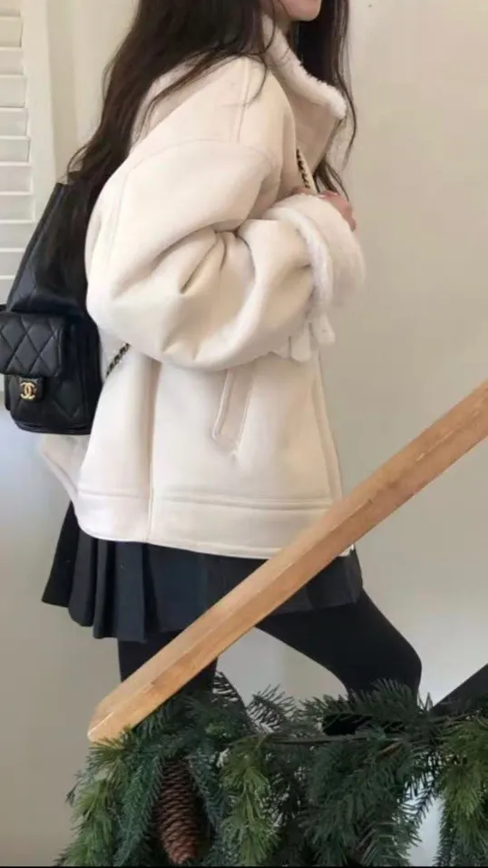 東大門麂皮毛絨翻領外套